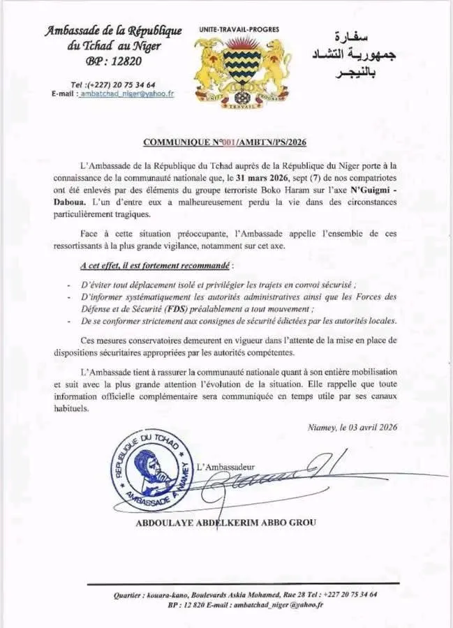 نيامي – الأيامأعلنت سفارة جمهورية تشاد لدى جمهورية ال...